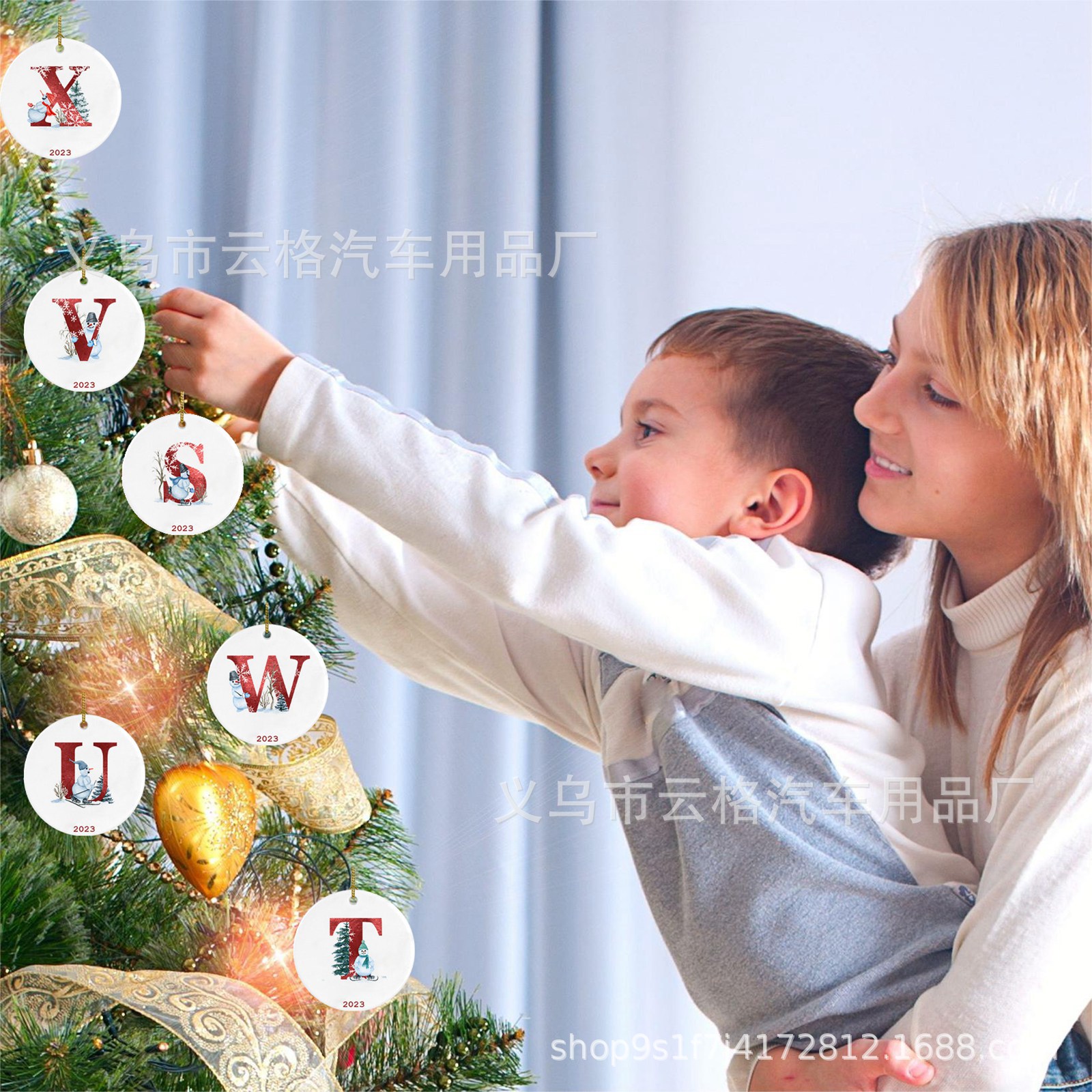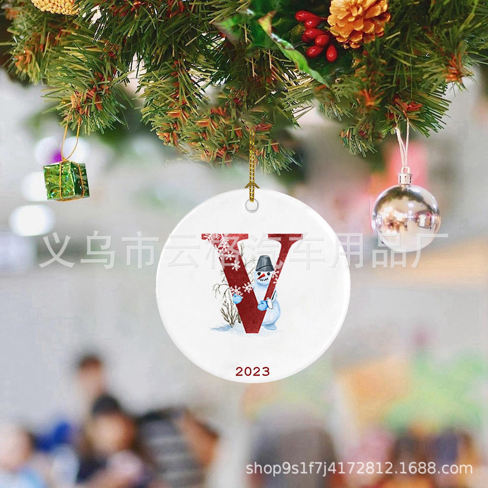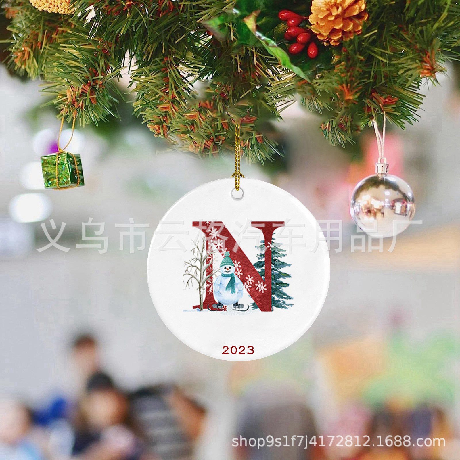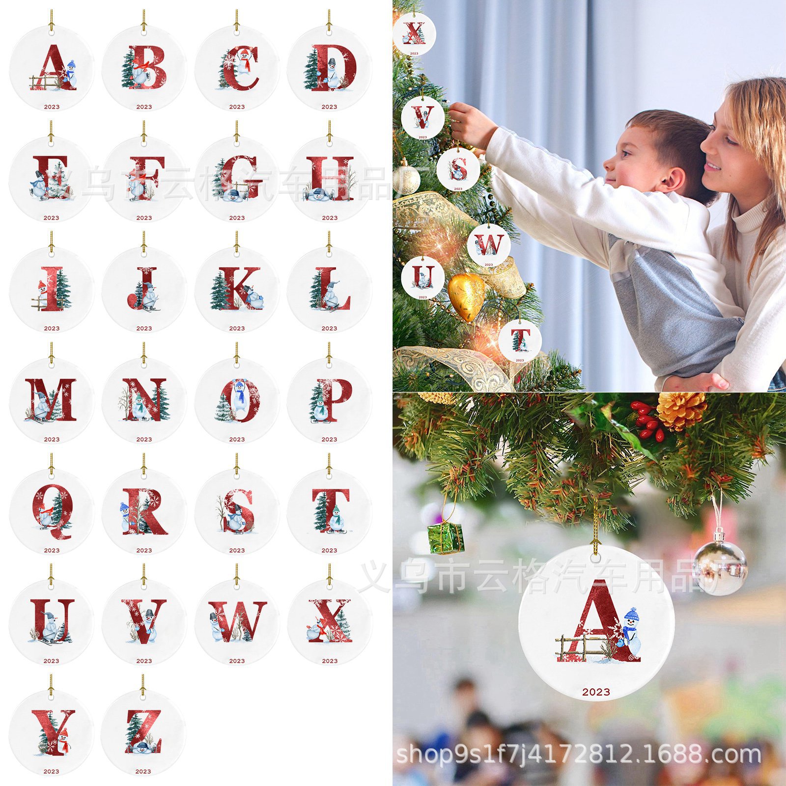 2023 xuyên biên giới Amazon mới 26 chữ cái Giáng sinh người tuyết mặt dây chuyền Giáng sinh-đồ trang trí ô tô acrylic