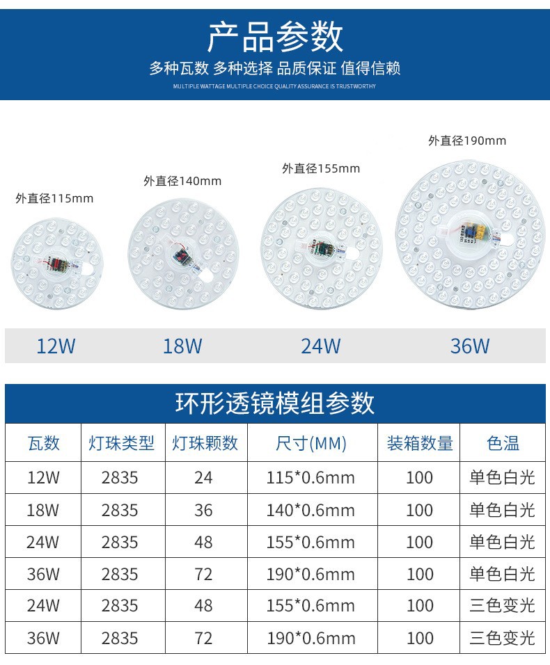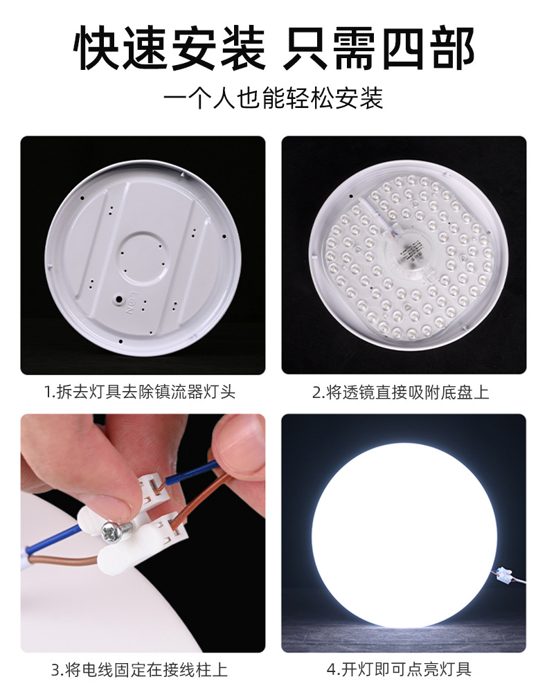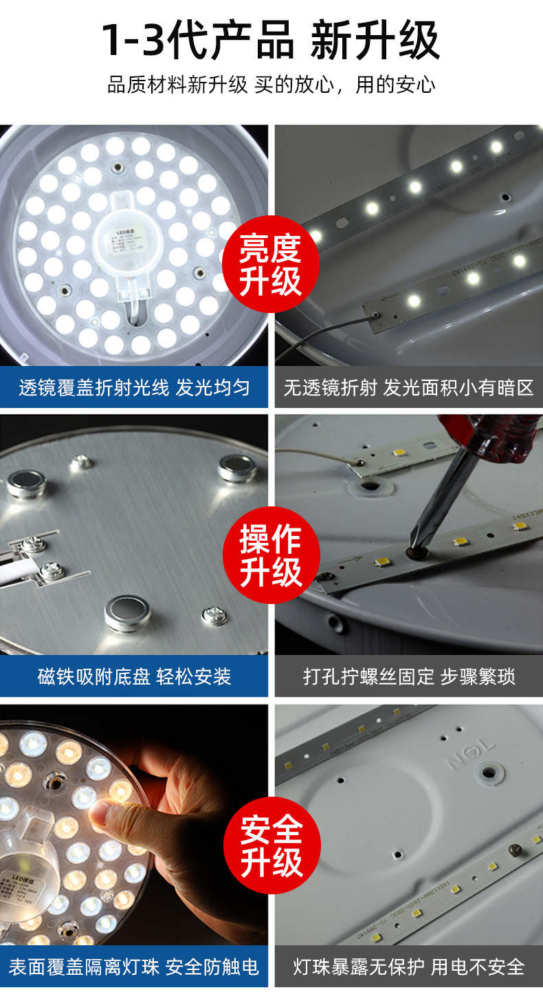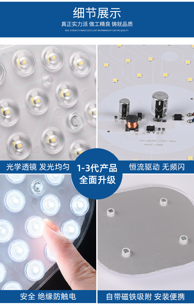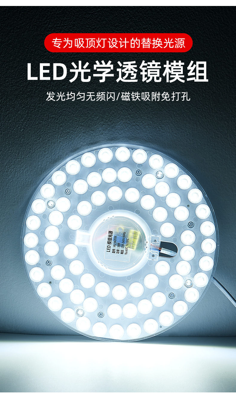 Đèn Trần hình vòng dẫn, mô-đun tiết kiệm năng lượng, nguồn sáng, đĩa đèn vá dòng điện không đổi có độ sáng cao, bấc từ tính hình tròn