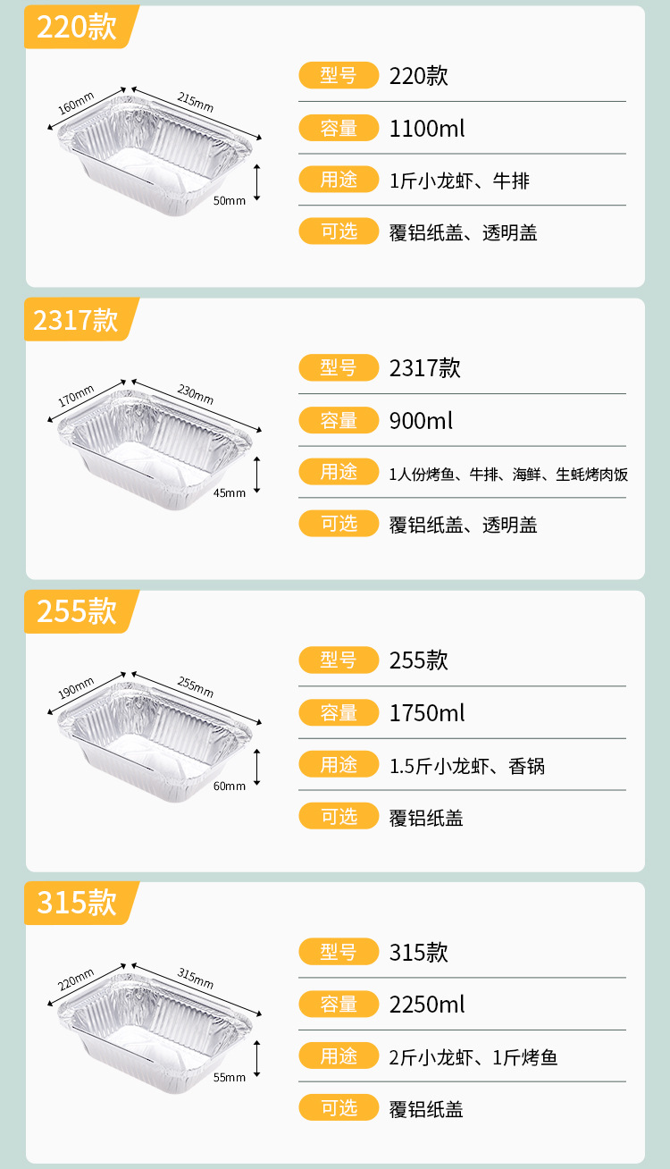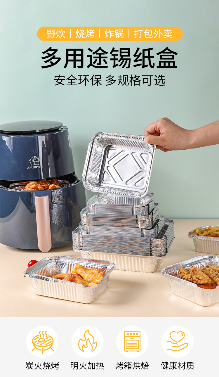 Hộp thiếc hộp đựng giấy nhôm nướng hộp cơm dùng một lần hộp đựng tôm càng hình chữ nhật hộp đóng gói bánh nướng cơm đĩa cá tròn