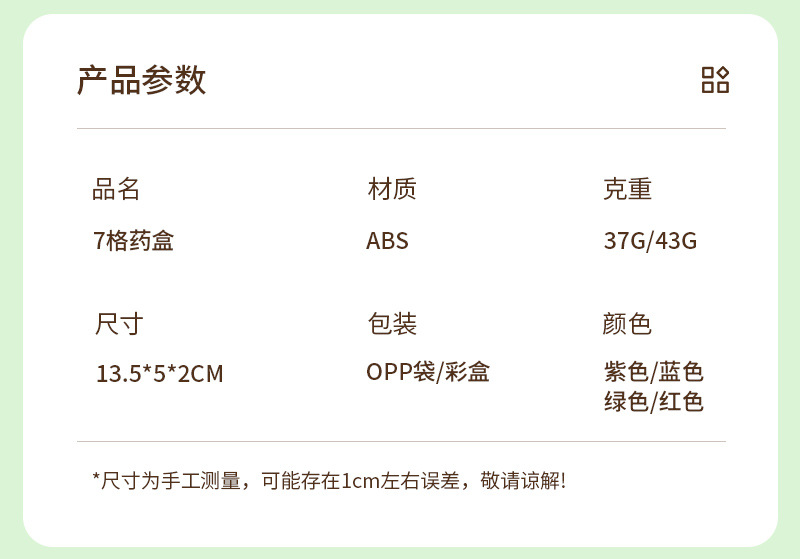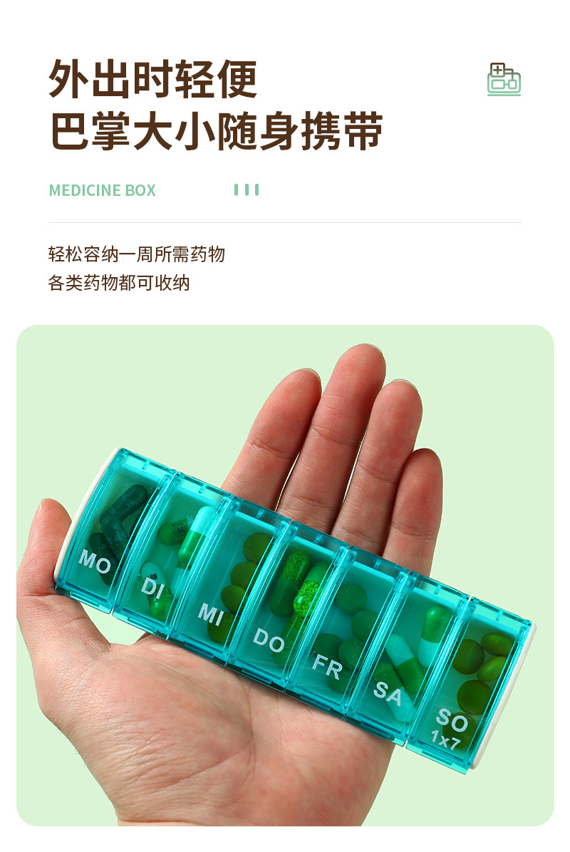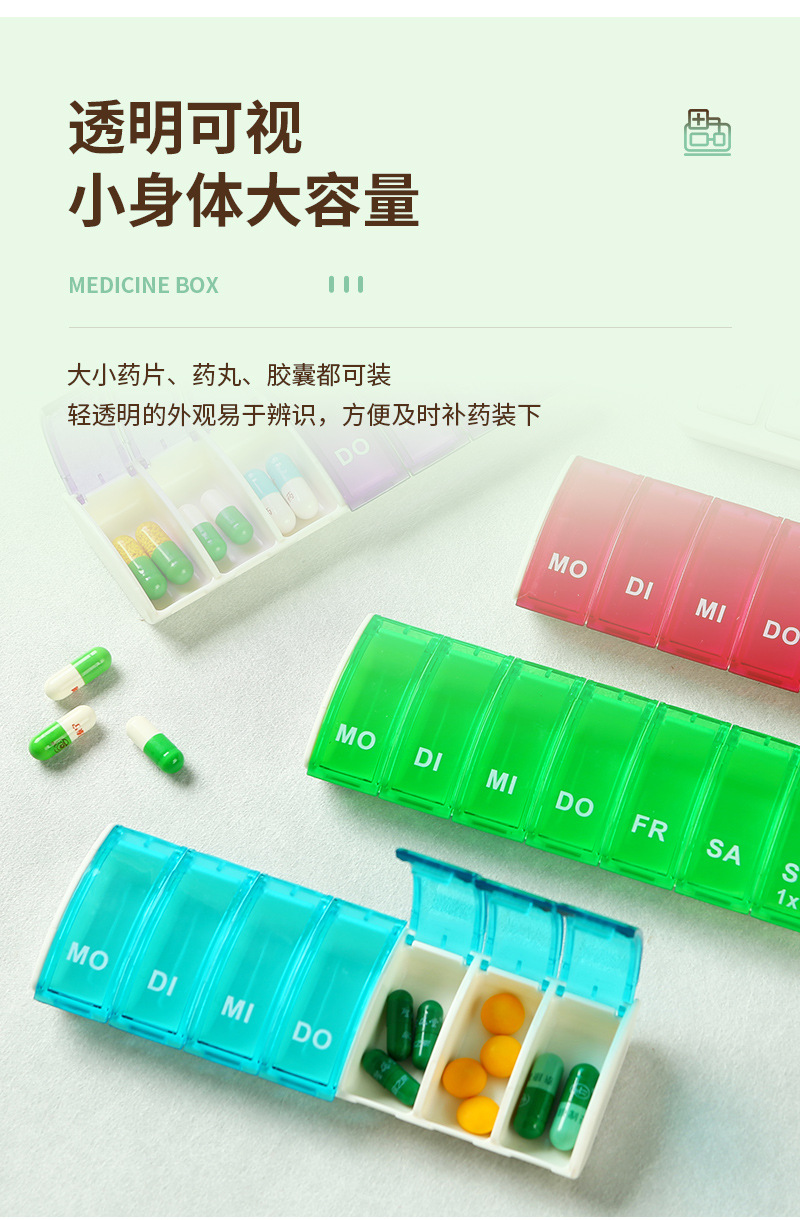 Nhà sản xuất bán buôn hộp thuốc bảy ngày một tuần Hộp đựng thuốc cầm tay mini bảy ngăn Hộp Đựng Thuốc bằng nhựa bán buôn